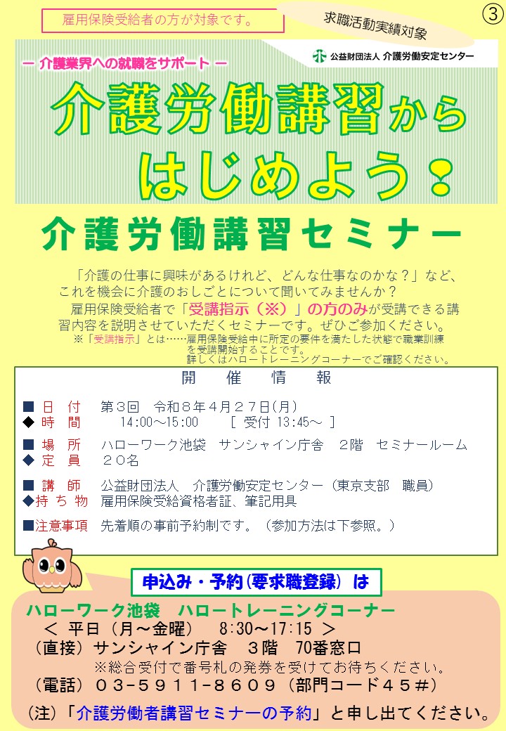 職業訓練(介護労働講習)セミナーの開催【事前予約制】