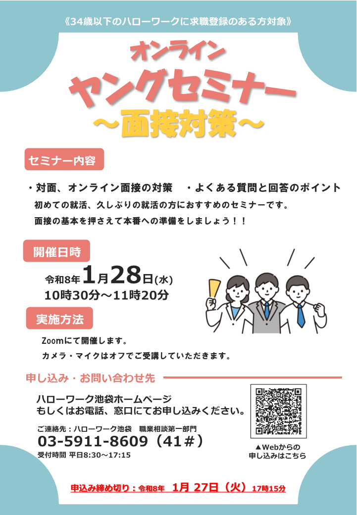 ハローワーク池袋職業相談第一部門の窓口または電話でお申し込みください。