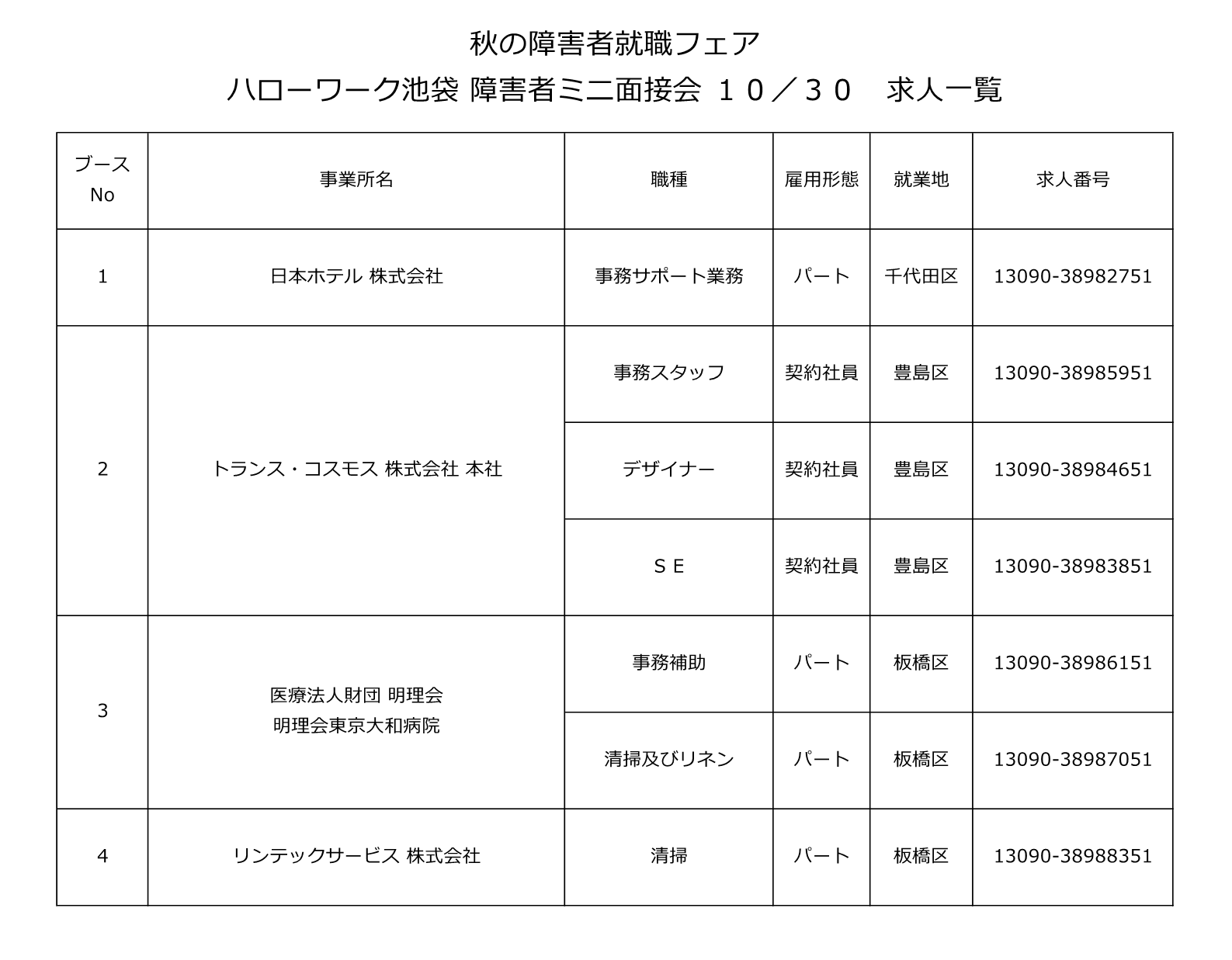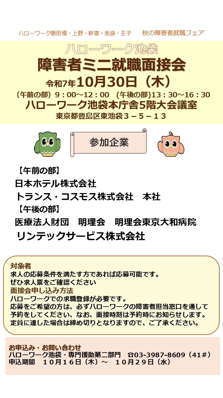 ハローワーク池袋 専門援助第二部門 電話03(3987)8609(41#)