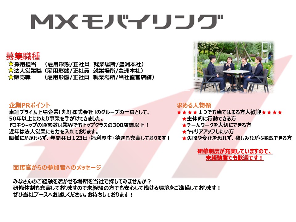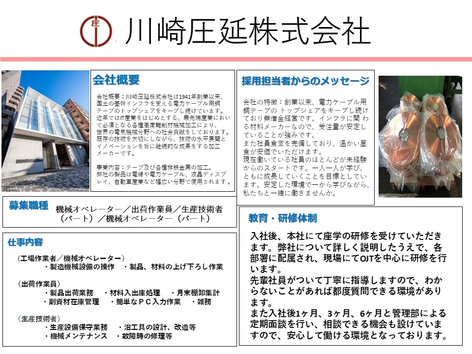 - 面接希望の方は履歴書(写真貼付)を社数分お持ちください。