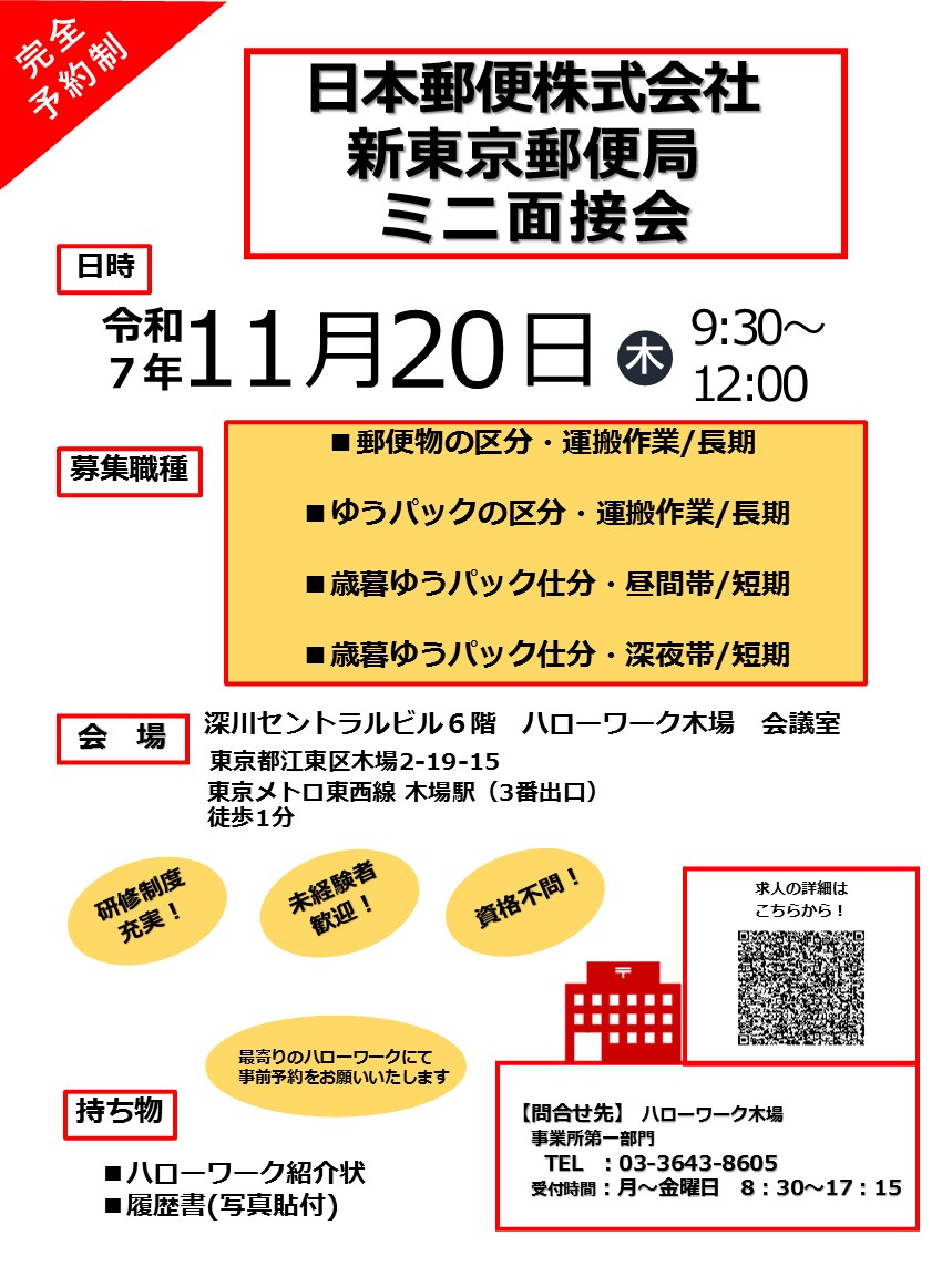 ミニ面接会「日本郵便株式会社新東京郵便局」