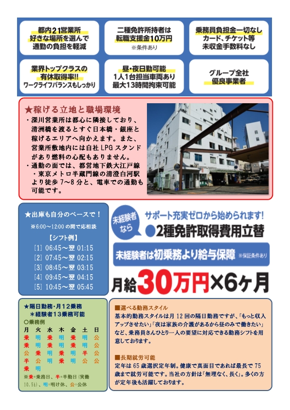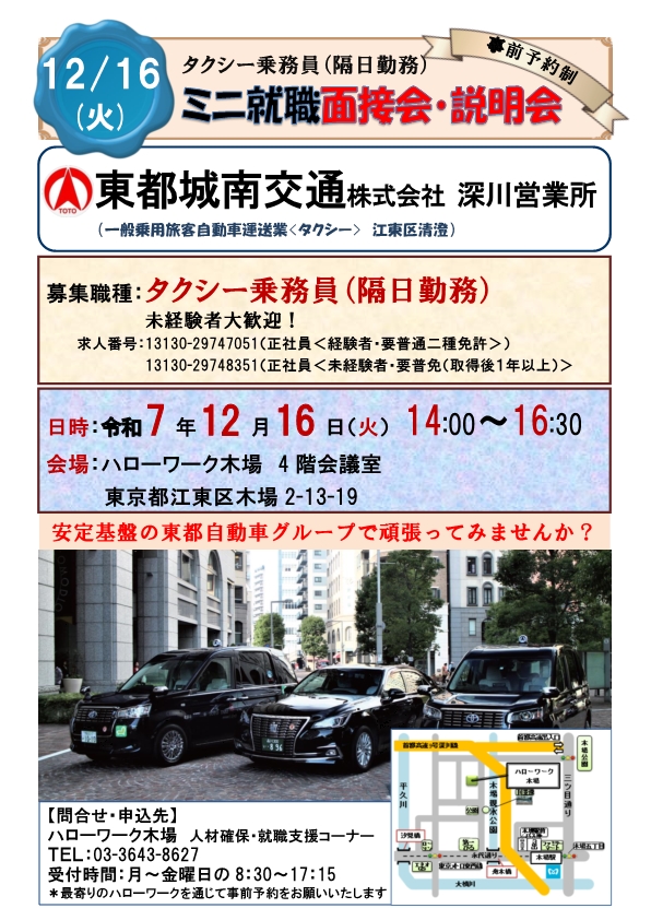 就職面接・説明会「東都城南交通株式会社 深川営業所」