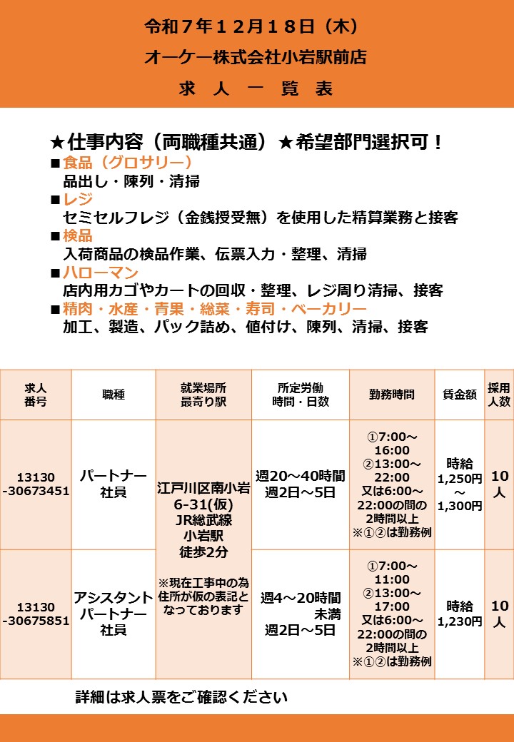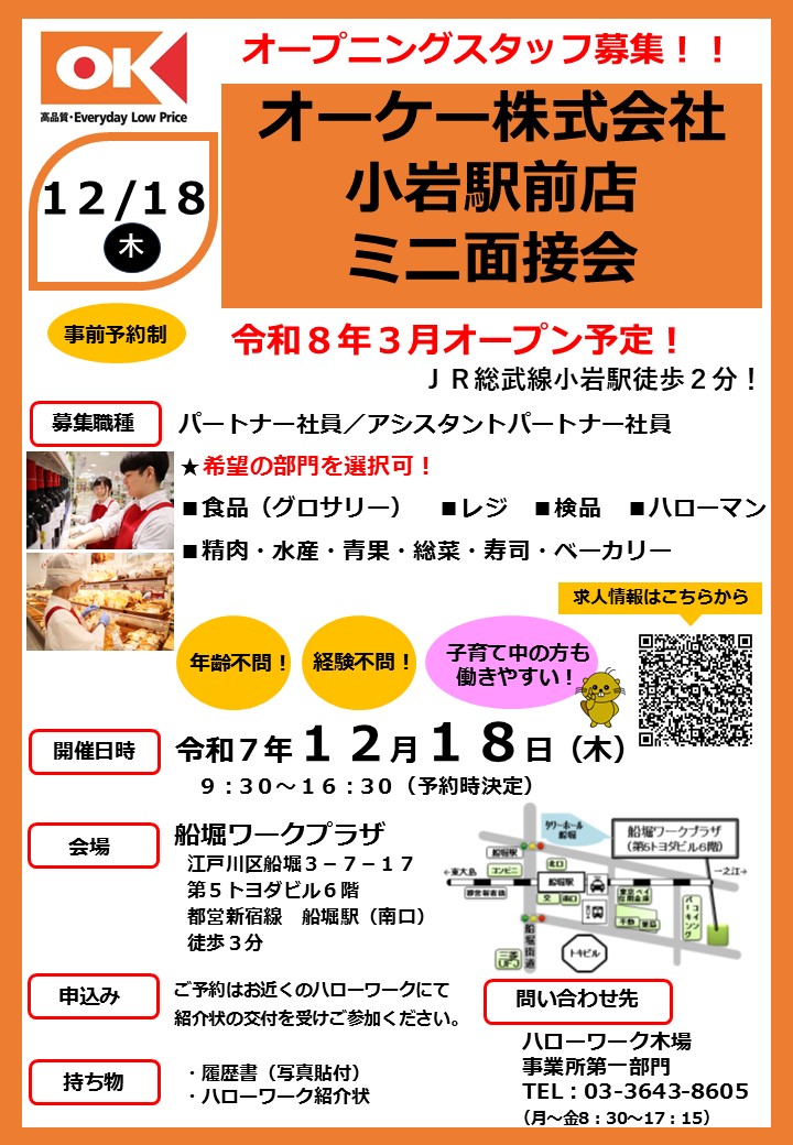 ミニ面接会「オーケー株式会社 小岩駅前店」