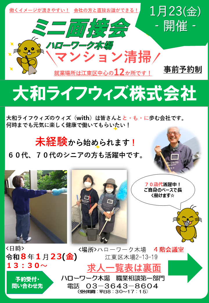 - 予約制:面接・相談を希望する方は、最寄りのハローワークを通じて事前予約をお願いします。