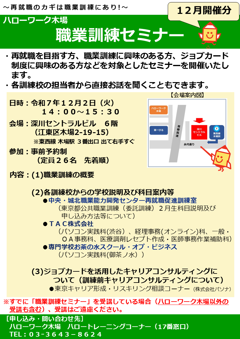 ハローワーク木場 17番窓口 職業訓練コーナー