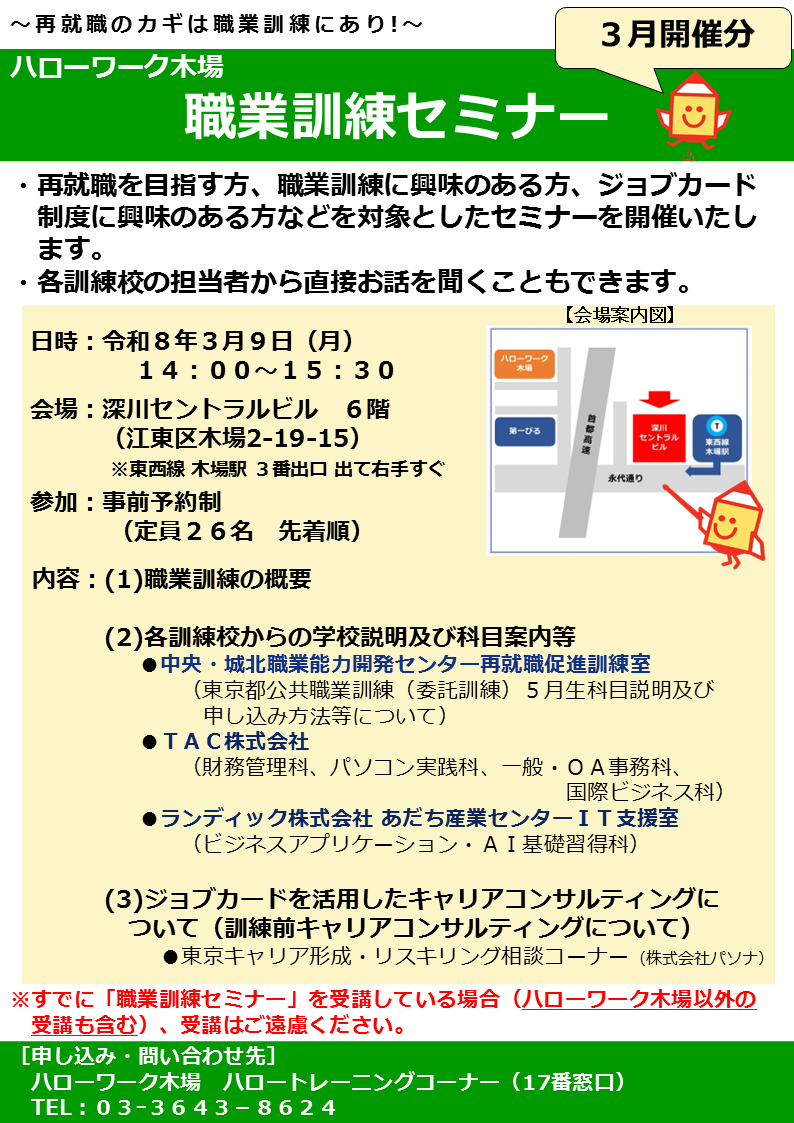 ハローワーク木場 17番窓口 職業訓練コーナー