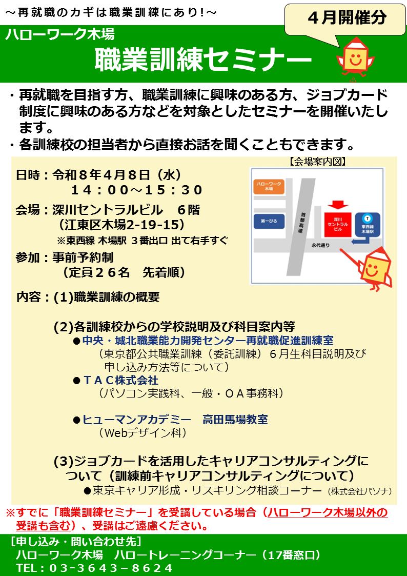 ハローワーク木場 17番窓口 職業訓練コーナー