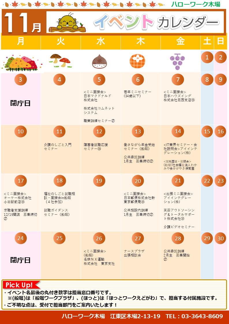 各種イベントの詳細は特集ページをご覧いただくか、担当窓口までお問合せください。