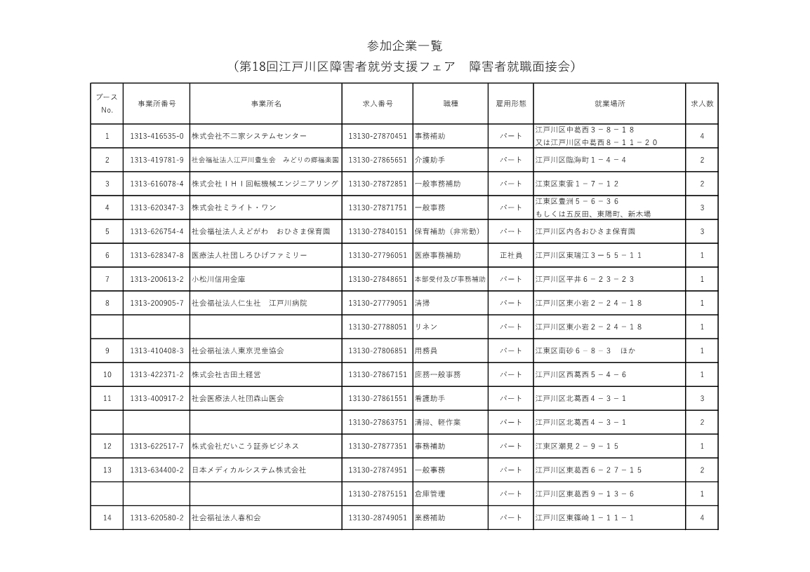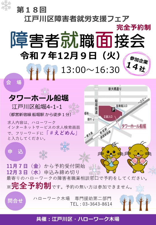 第18回 江戸川区障害者就労支援フェア 障害者就職面接会のご案内