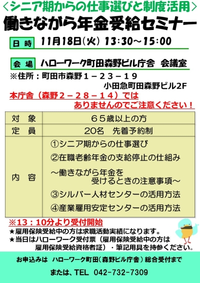 シニア期からの仕事選びと制度活用「働きながら年金受給セミナー」