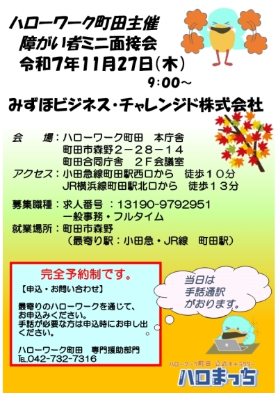 ※面接会予約後にキャンセルされる場合は速やかにハローワーク町田 専門援助部門までお知らせください。