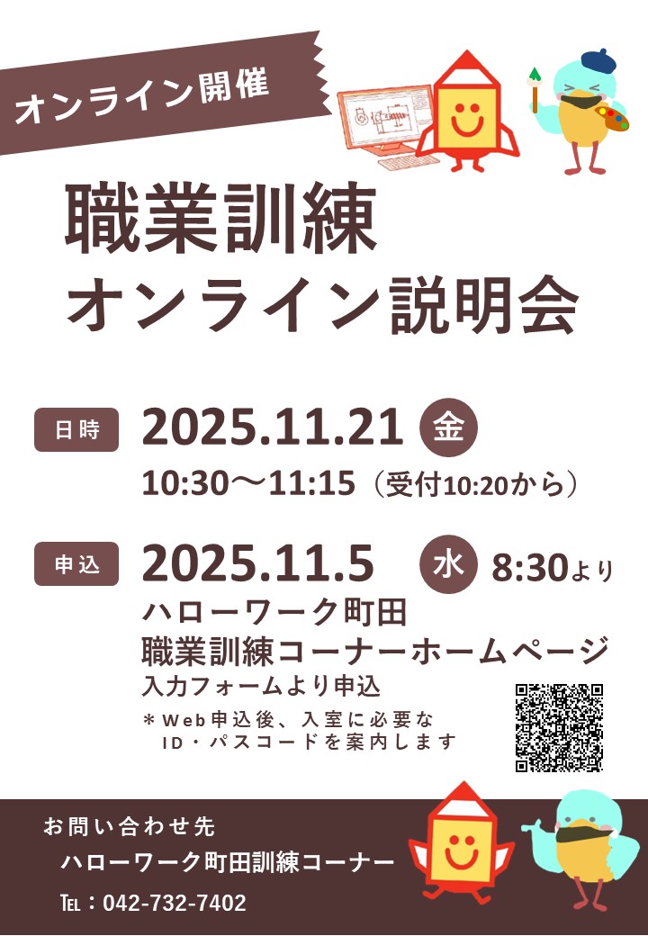 「公共職業訓練」「求職者支援訓練」の入校生募集案内は、各訓練機関ホームページで確認してください。