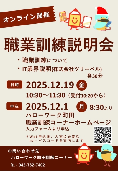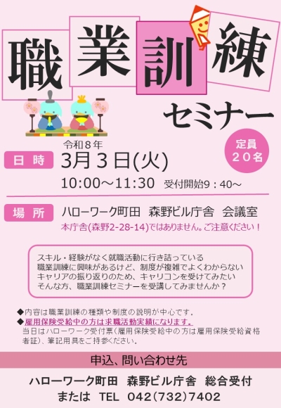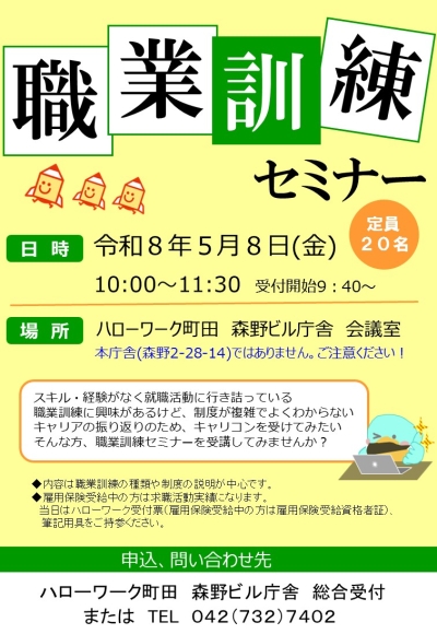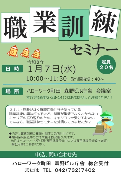 申込:ハローワーク町田総合受付またはTEL(042-732-7402)