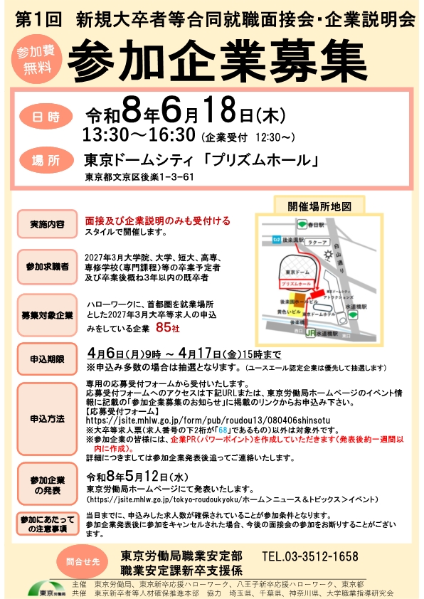 「第1回 新規大卒者等合同就職面接会・企業説明会」参加企業募集のお知らせ