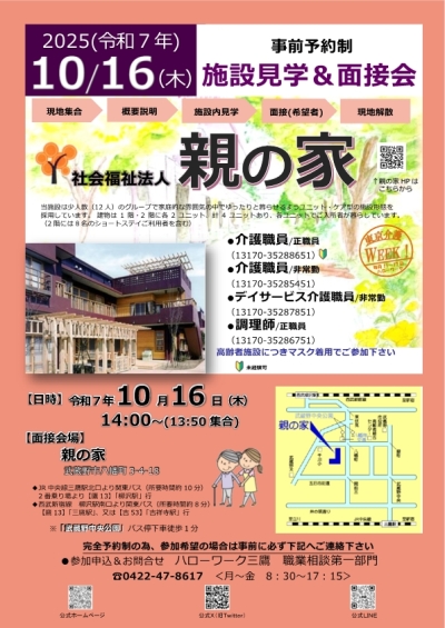 10/16(木)施設見学&面接会 (社会福祉法人 親の家)