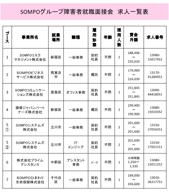 1/13(火)SOMPOグループ障害者就職面接会のお知らせ