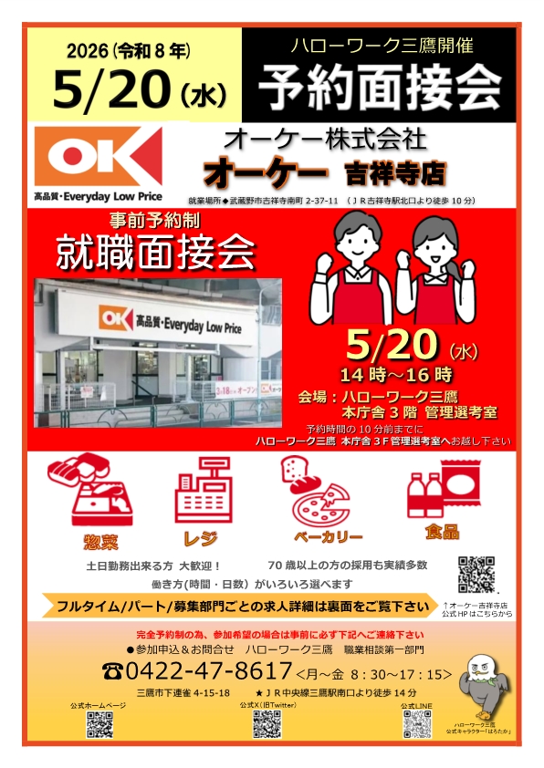 - ハローワーク三鷹 本庁舎3階 管理選考室(三鷹市下連雀4-15-18)