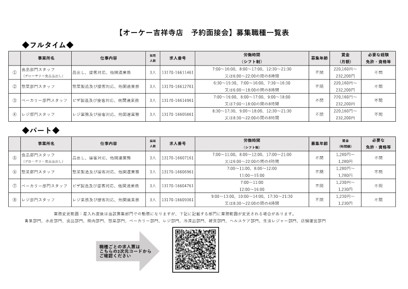 | 惣菜部門スタッフ | 13170-16612761 | パートナー社員 |