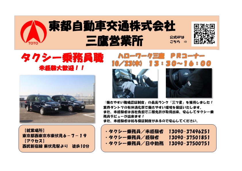 10/23(木)企業PRコーナー開催!【東都自動車交通株式会社】