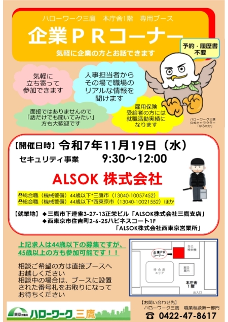 11/19(水)企業PRコーナー開催!【ALSOK株式会社】