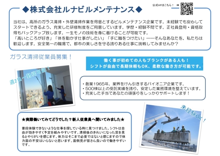 11/26(水)企業PRコーナー開催!【株式会社ルナビルメンテナンス】
