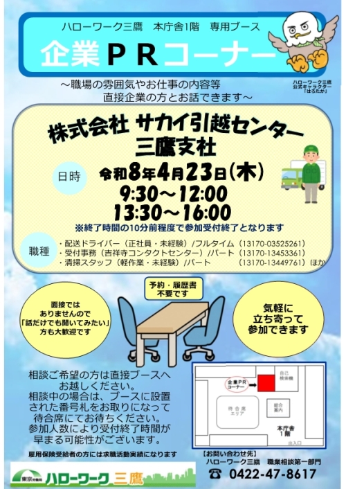 - ハローワーク三鷹1階 企業PRコーナー(三鷹市下連雀4-15-18)