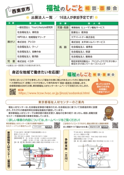 主催:社会福祉法人西東京市社会福祉協議会/社会福祉法人東京都社会福祉協議会 東京都福祉人材センター