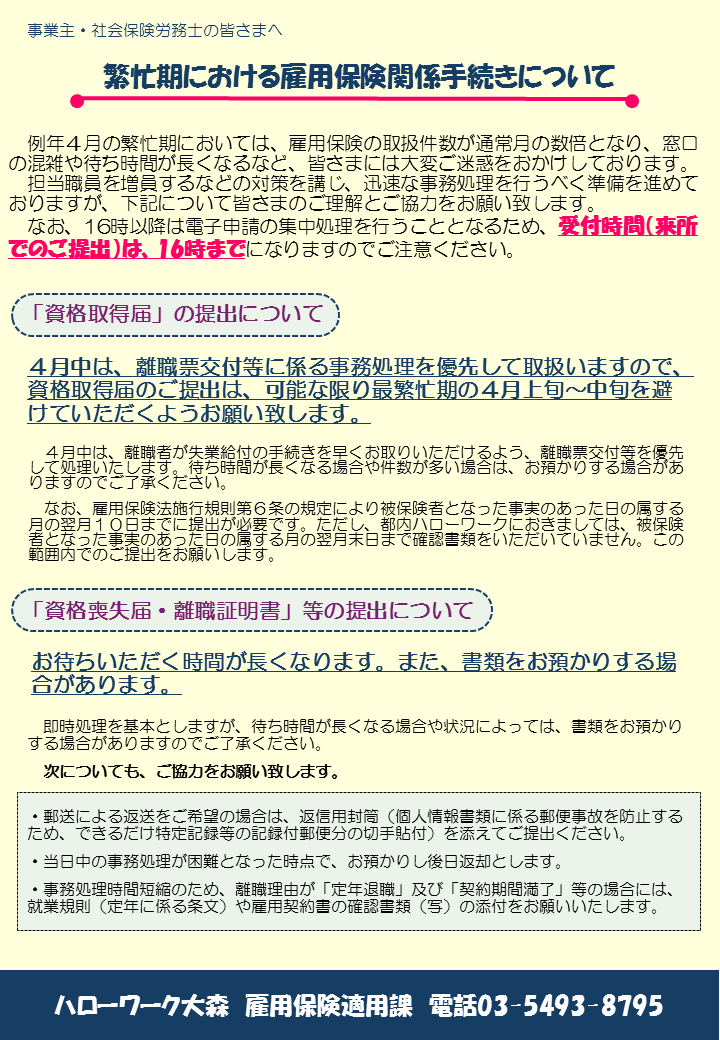 ハローワーク大森 〒143-8588 大田区大森北4-16-7