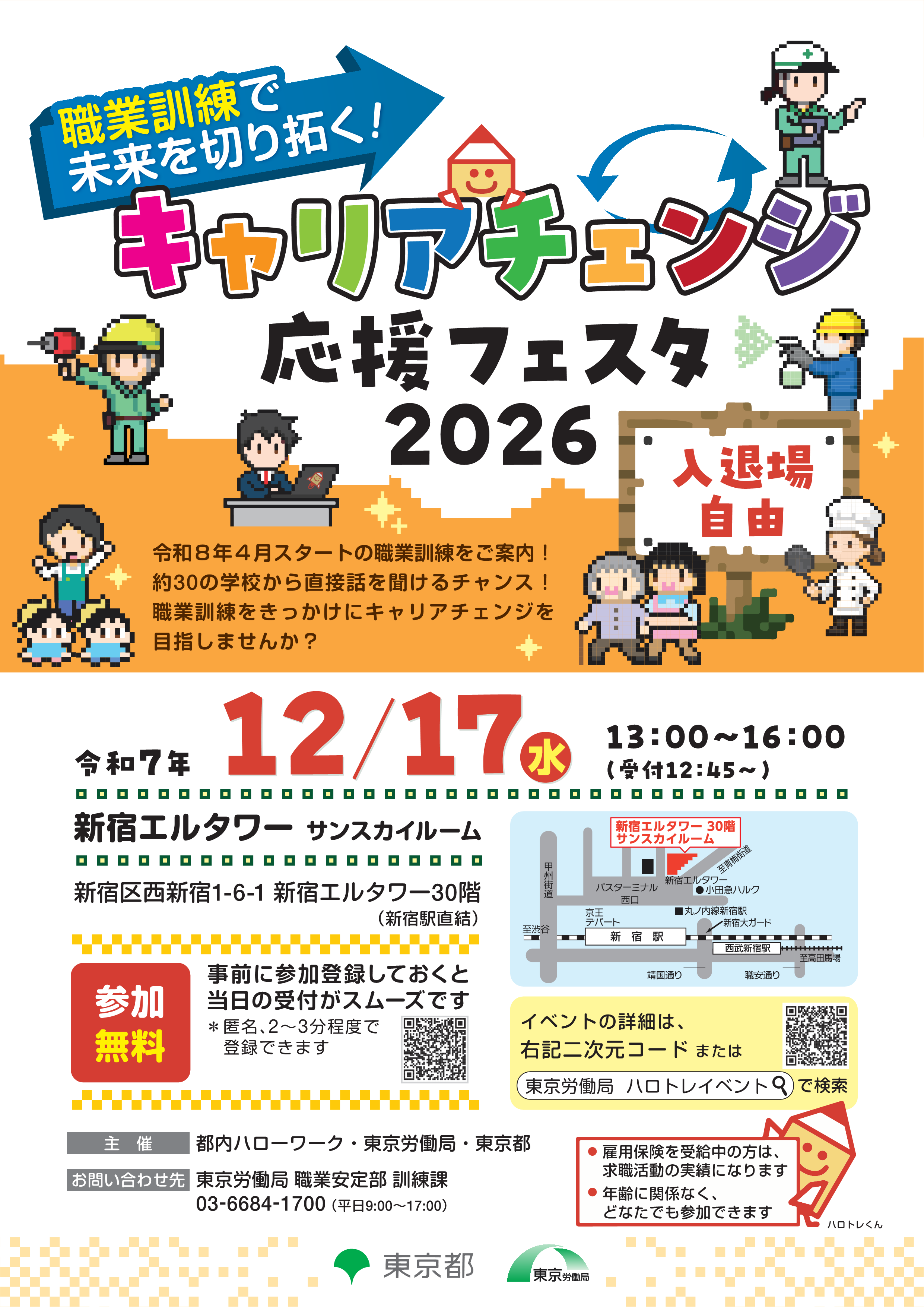 「職業訓練で未来を切り拓く!キャリアチェンジ応援フェスタ2026」開催のお知らせ<参加無料・個別相談可能>