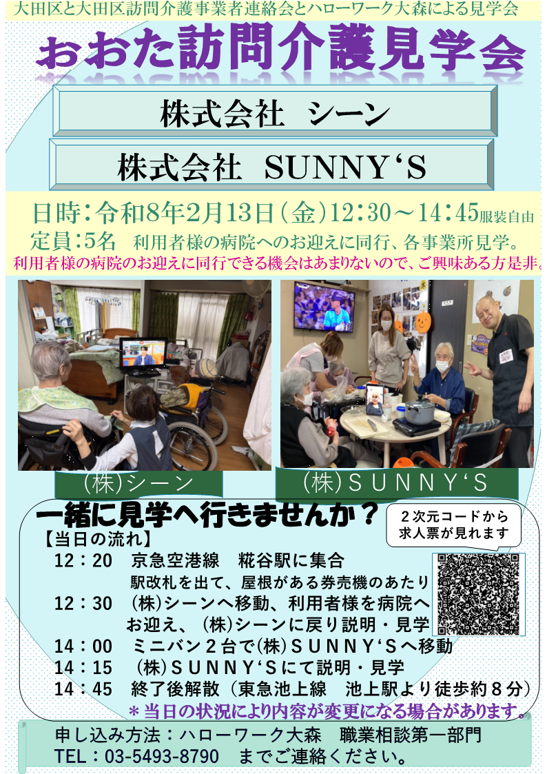 大田区・大田区訪問介護事業者連絡会・ハローワーク大森が一体となって行う見学会です。