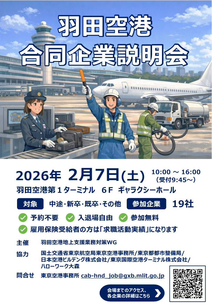 ※羽田空港合同企業説明会に参加されている事業所の面接会をハローワーク大森で開催!!