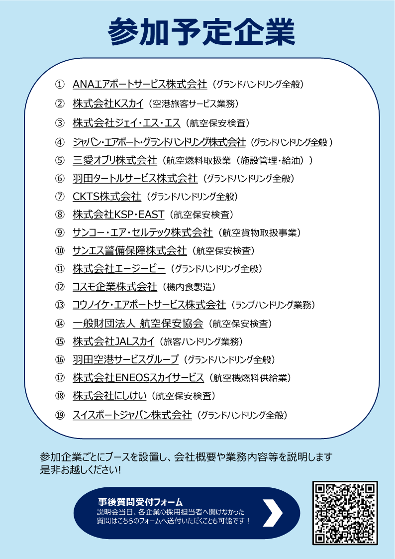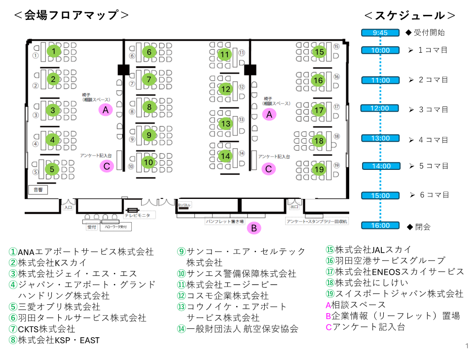 グランドハンドリングや給油、保安検査会社など、羽田空港を支える様々な企業が出展します。