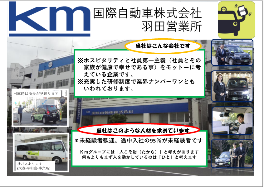 お客様を安全に確実に迅速、快適に目的地へお送りする仕事です。