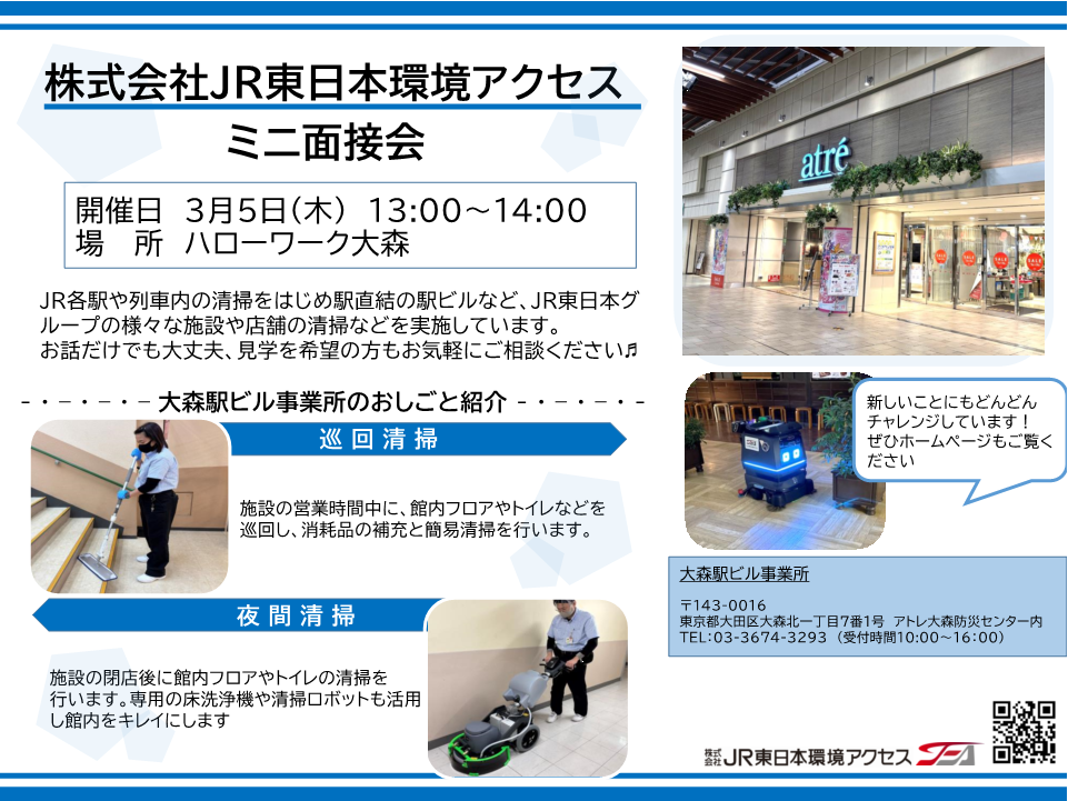 ①13:00~14:00 企業説明会(場所:ハローワーク大森)