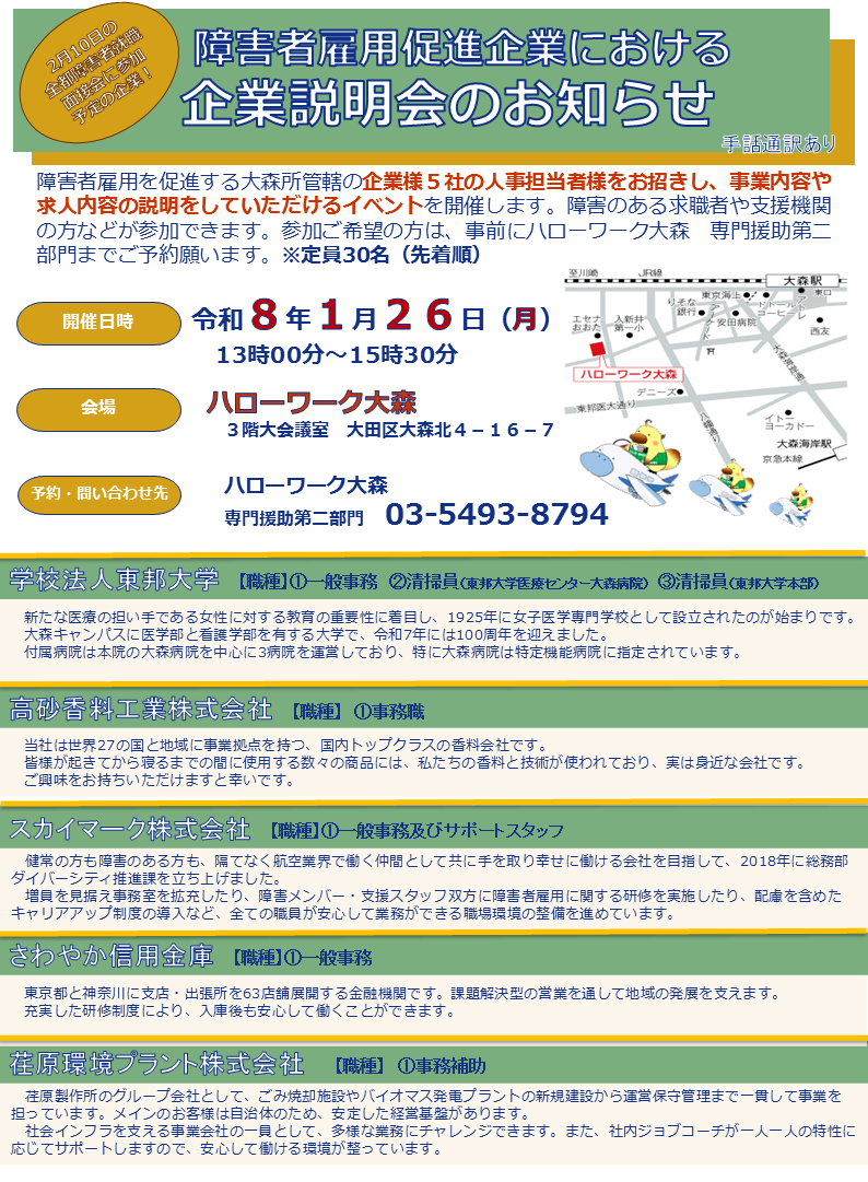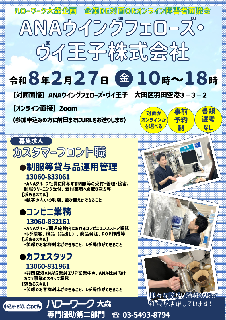 ハローワーク大森 専門援助第二部門 TEL:03-5493-8794