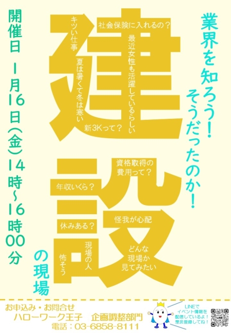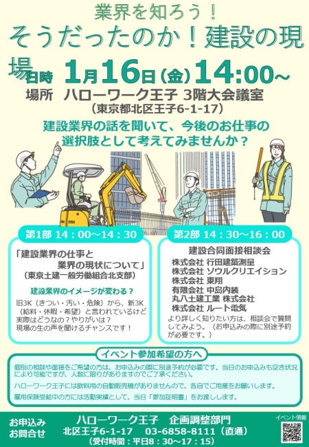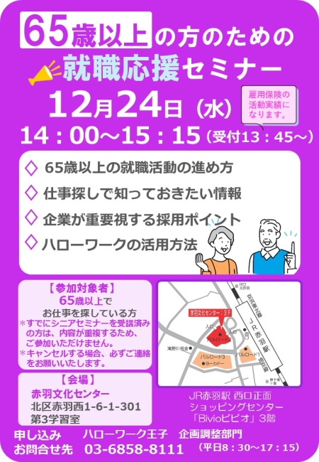 12/19(金)14:00~15:30 ハローワーク王子 3階大会議室にて開催 詳細はリーフレットと特設ページをご覧ください。