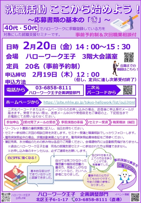 2/20(金)14:00~15:30 ハローワーク王子 3階大会議室にて開催します!詳細はリーフレットと特設ページをご覧ください。