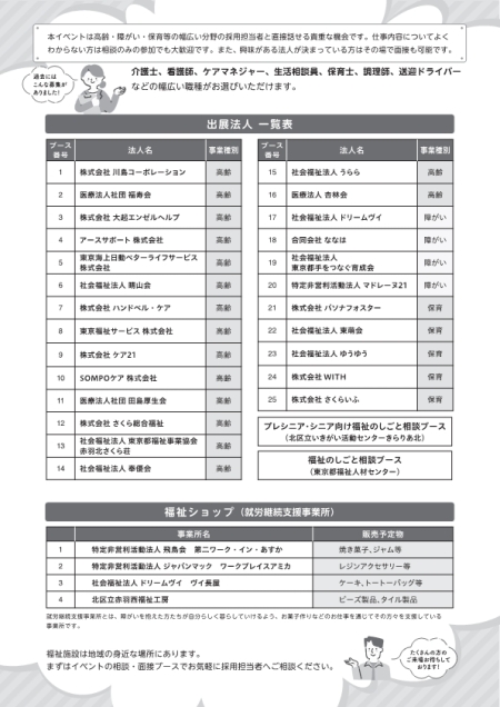 - 福祉のしごとに興味のある方 ※資格なし・未経験の方もお気軽にご参加ください。面接希望の方は、お近くのハローワークで発行の紹介状を持参してください。