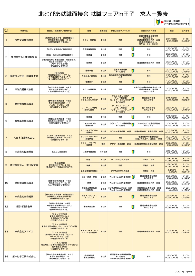 - 求人一覧表と下記リンクよりハローワークインターネットサービスの求人一覧をご覧ください。