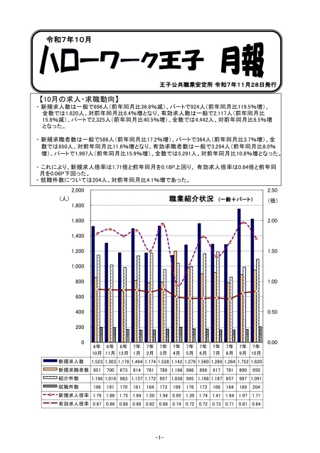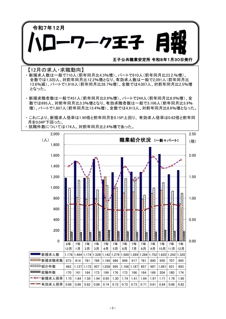 ハローワーク王子管内(北区)の求人・求職・職業紹介状況、雇用保険取扱状況について記載しています。