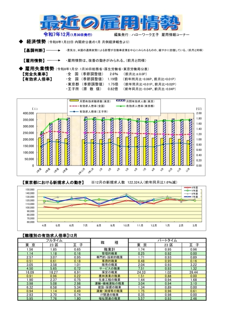統計情報(バランスシート・中途採用者賃金情報・ハローワーク王子 月報など有効求人倍率等の雇用失業情勢)
