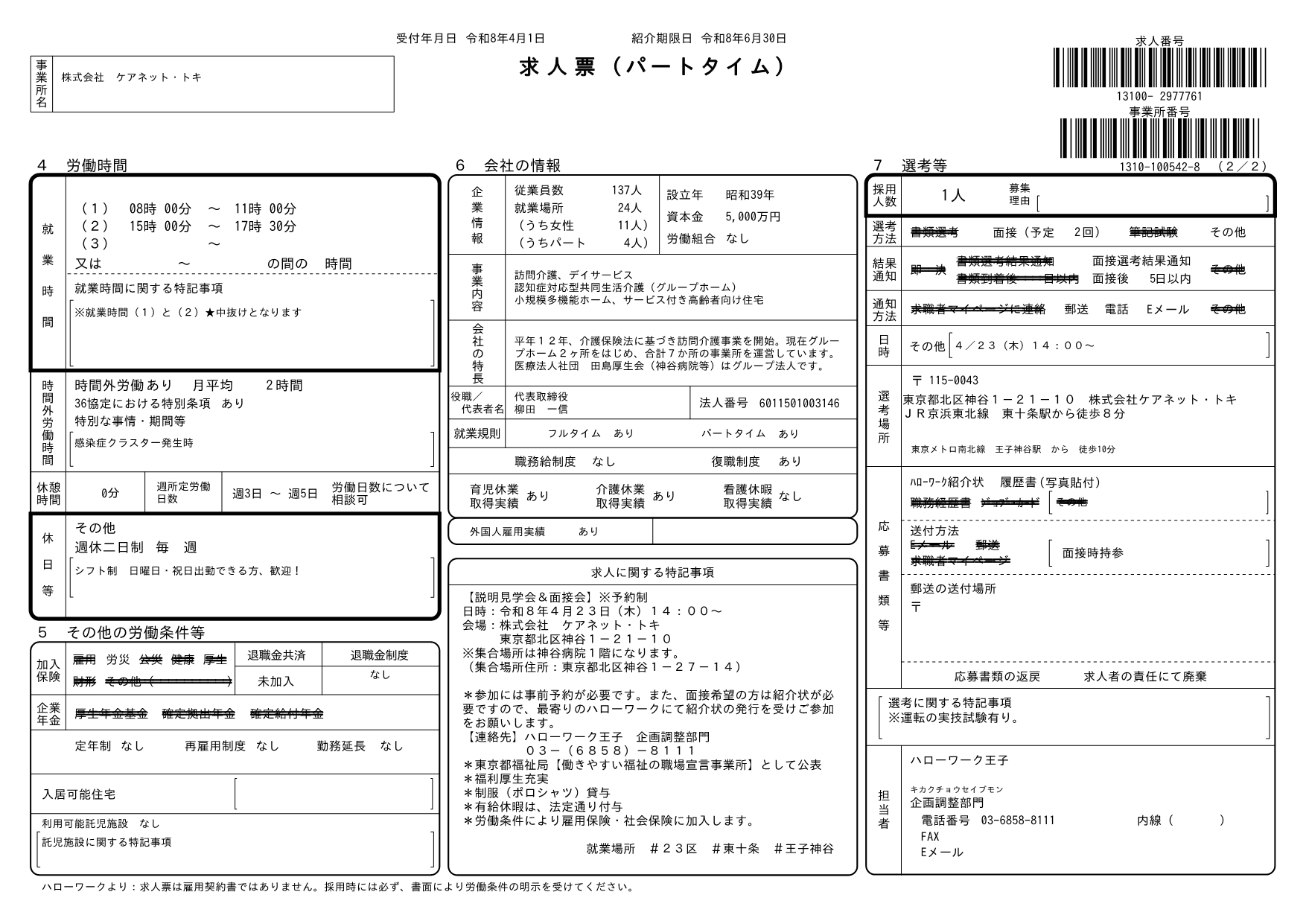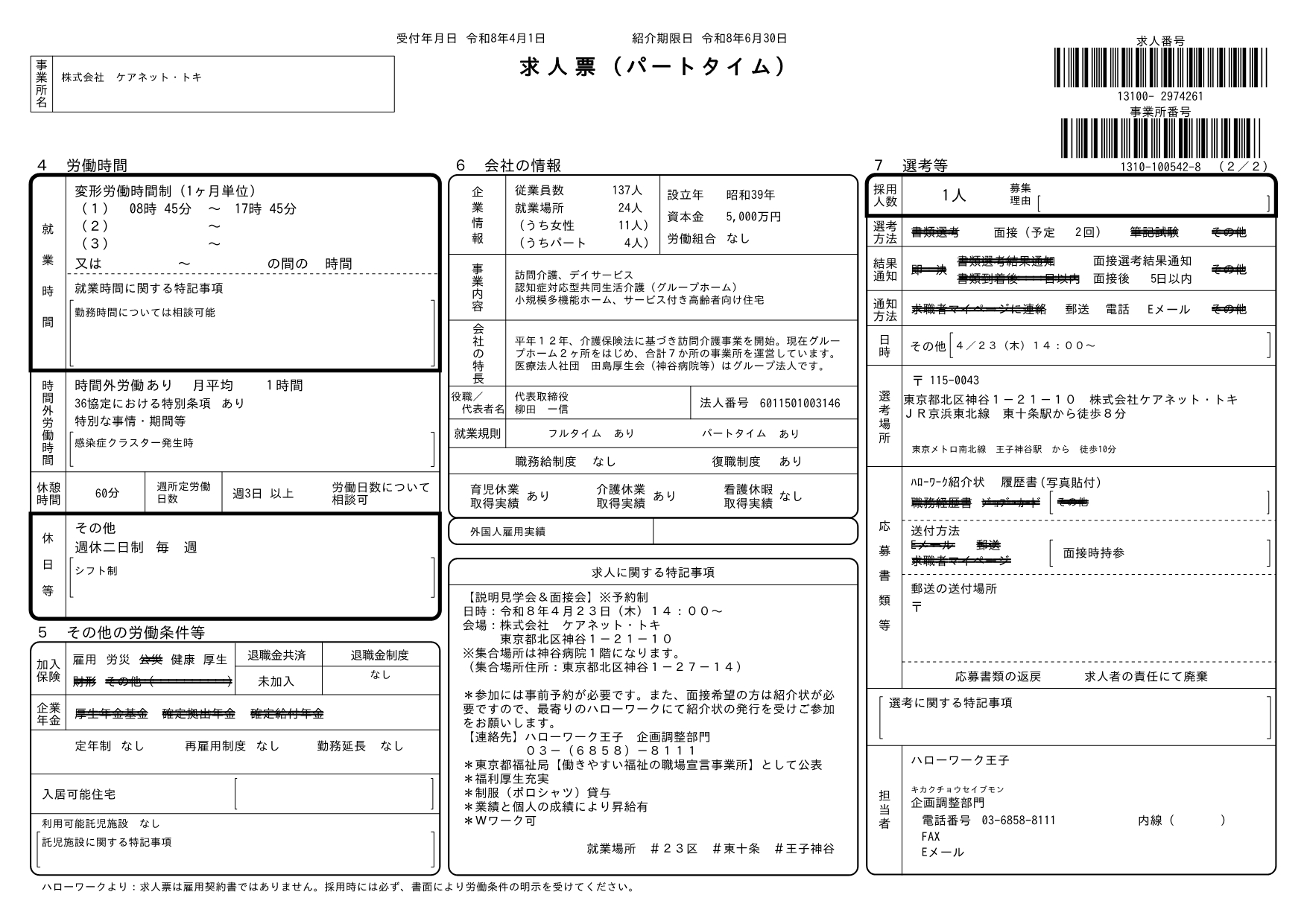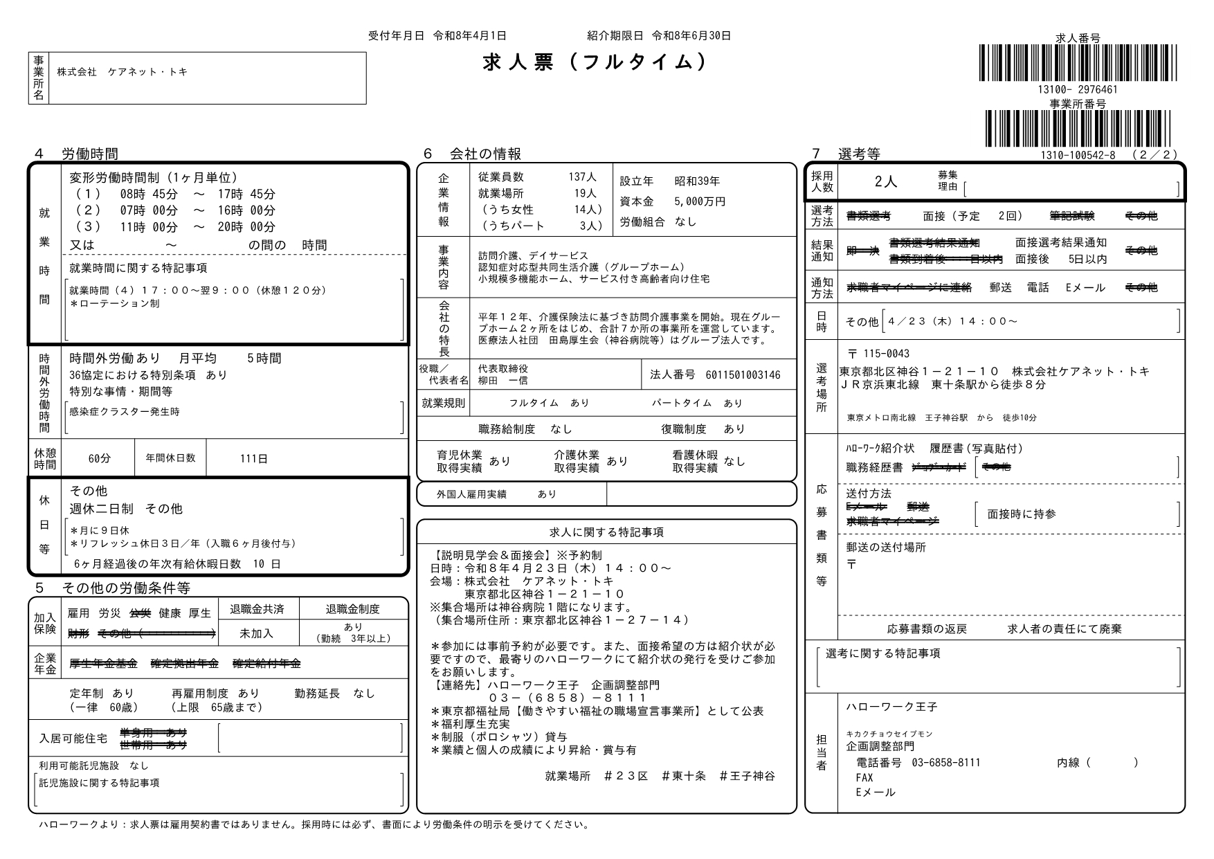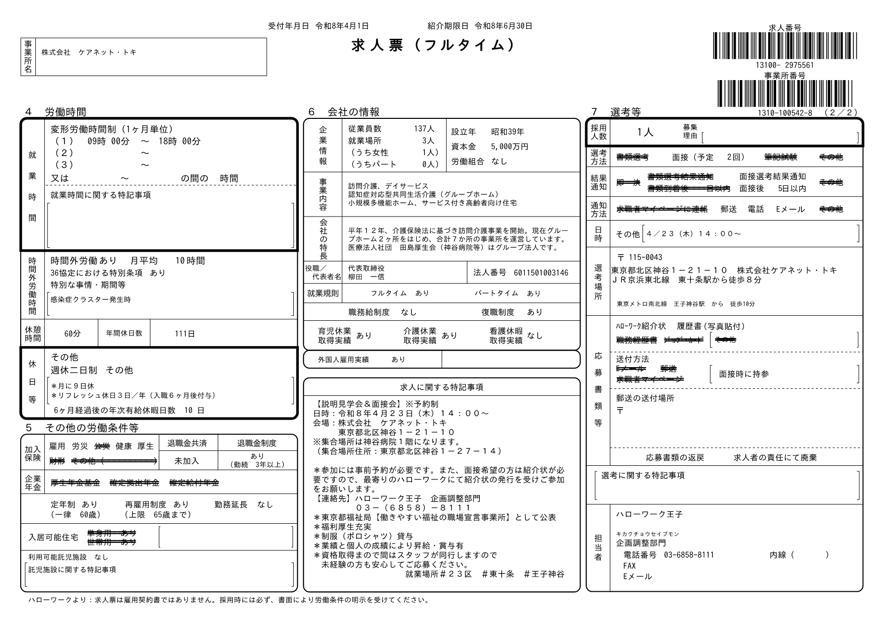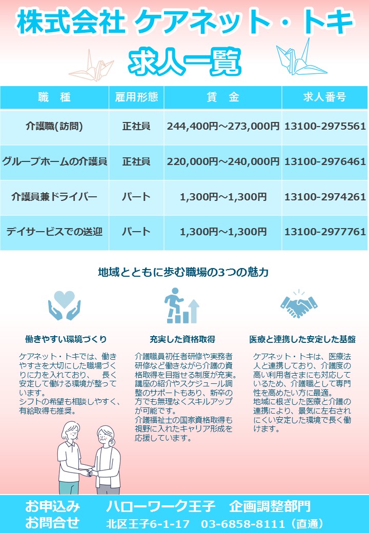 「株式会社ケアネット・トキ 説明見学会&面接会」を開催します!