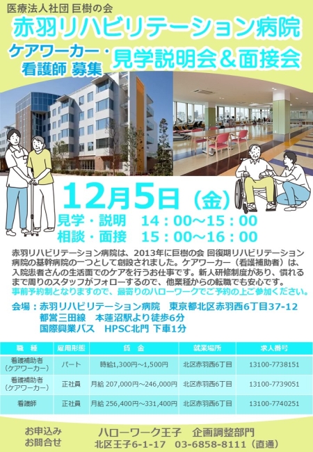 医療法人社団 巨樹の会 赤羽リハビリテーション病院 見学説明会&面接会を開催します!(事前予約制)