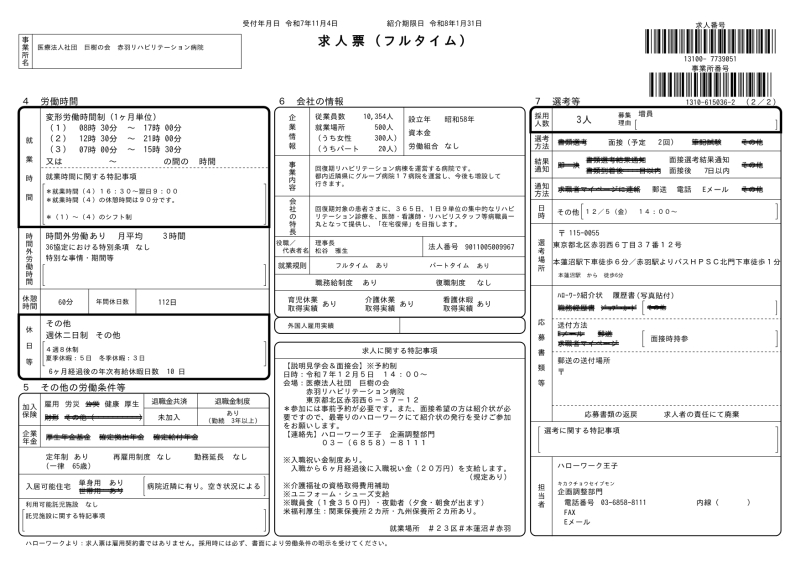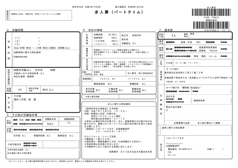 - 最寄りのハローワークの職業相談窓口を通してハローワーク王子 企画調整部門へ連絡していただき、面接時間の予約をして紹介状の交付を受けてください。見学説明会のみの参加希望の場合も事前予約が必要です。