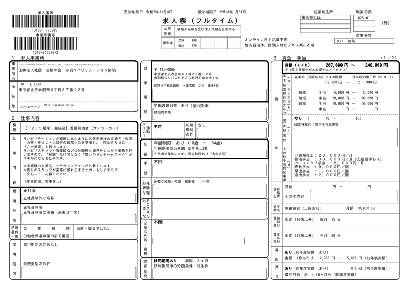 ②<求人票>看護補助者(ケアワーカー)フルタイム