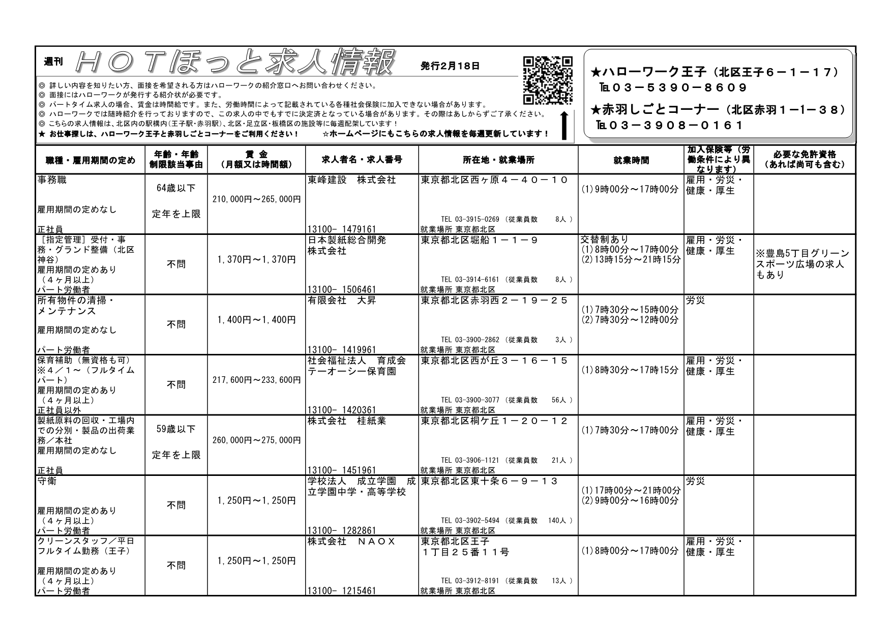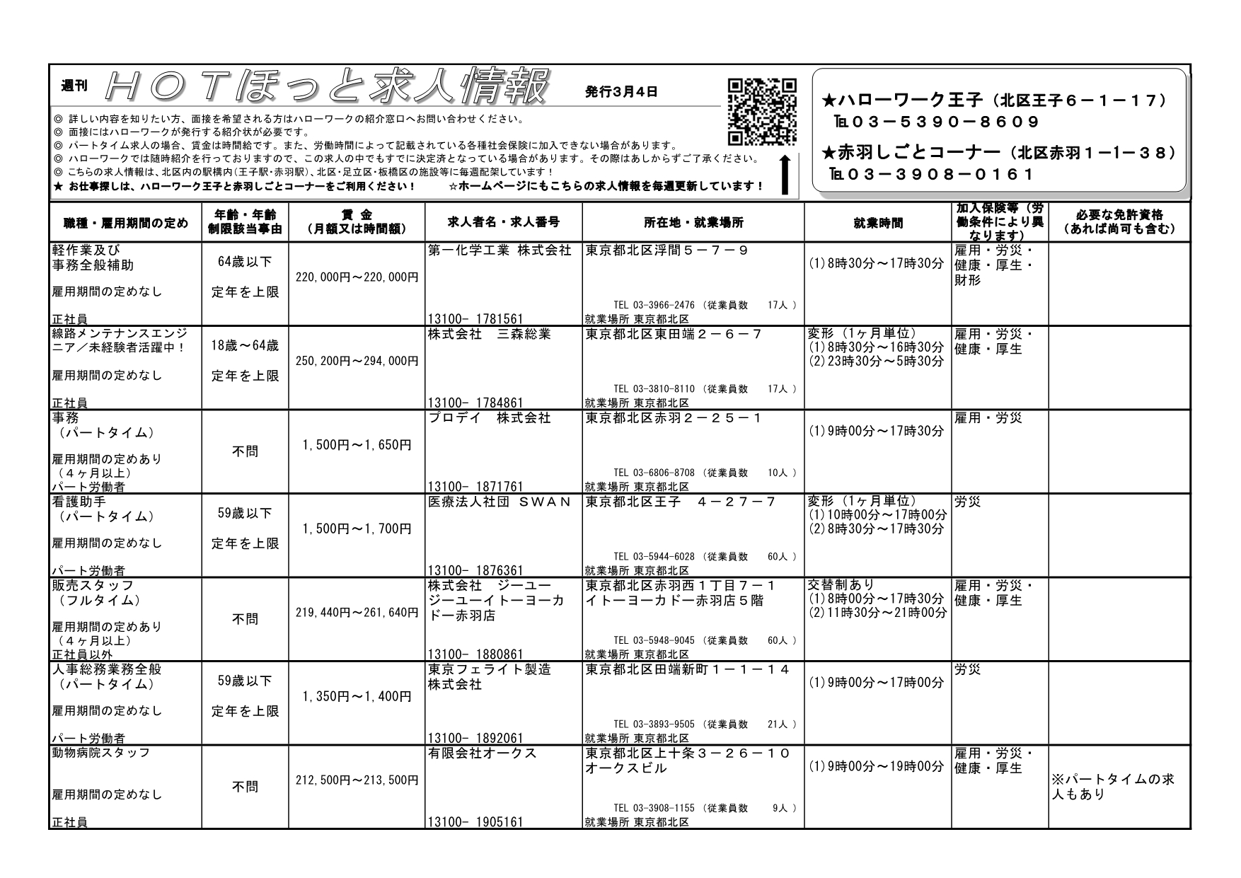 就業場所が北区内の地域の求人情報です!!こちらの求人情報は、北区内の駅前(王子駅・赤羽駅のハローワークポケット)、北区・足立区・板橋区の図書館・区民事務所などの一部施設にも毎週配架しています!