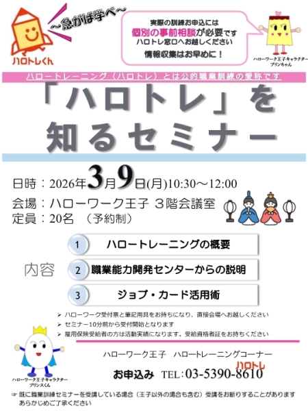 - ハロトレ(職業訓練)に興味のある方(過去に職業訓練セミナーを受講している場合、受講をお断りすることがありますのでご了承ください。)