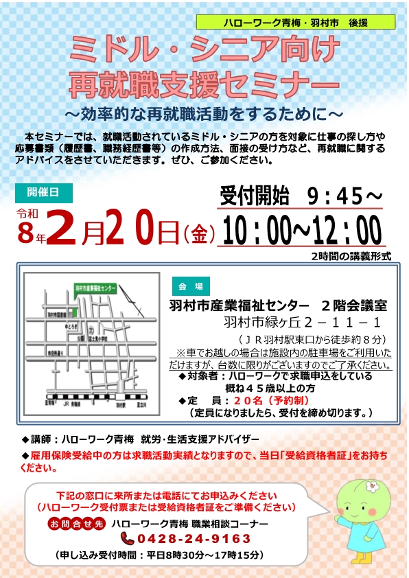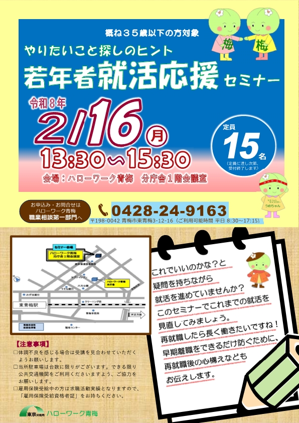 ※雇用保険受給のお手続きは16:00以降混雑するため16:00までのご来所をおすすめします。