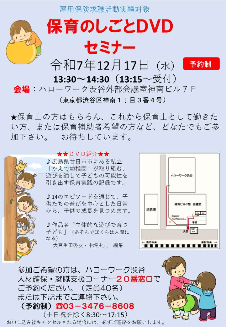 【ハローワーク渋谷】12/17 保育のしごとDVDセミナー