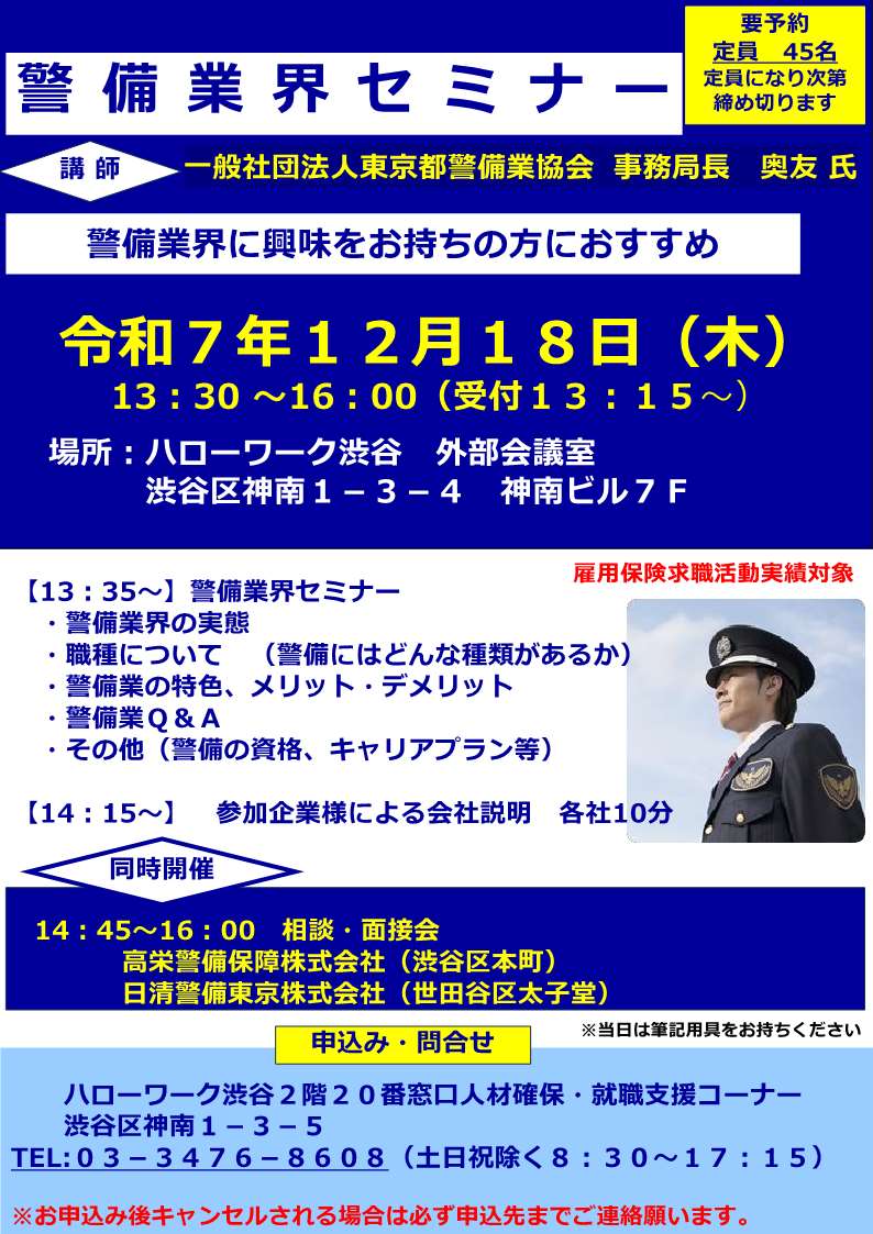 【ハローワーク渋谷】12/18 警備業界セミナー